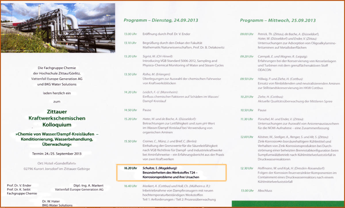 Kraftwerke AG fand im IfKorr statt: Vortrag über Ergebnisse an Dampferzeugerrohren und