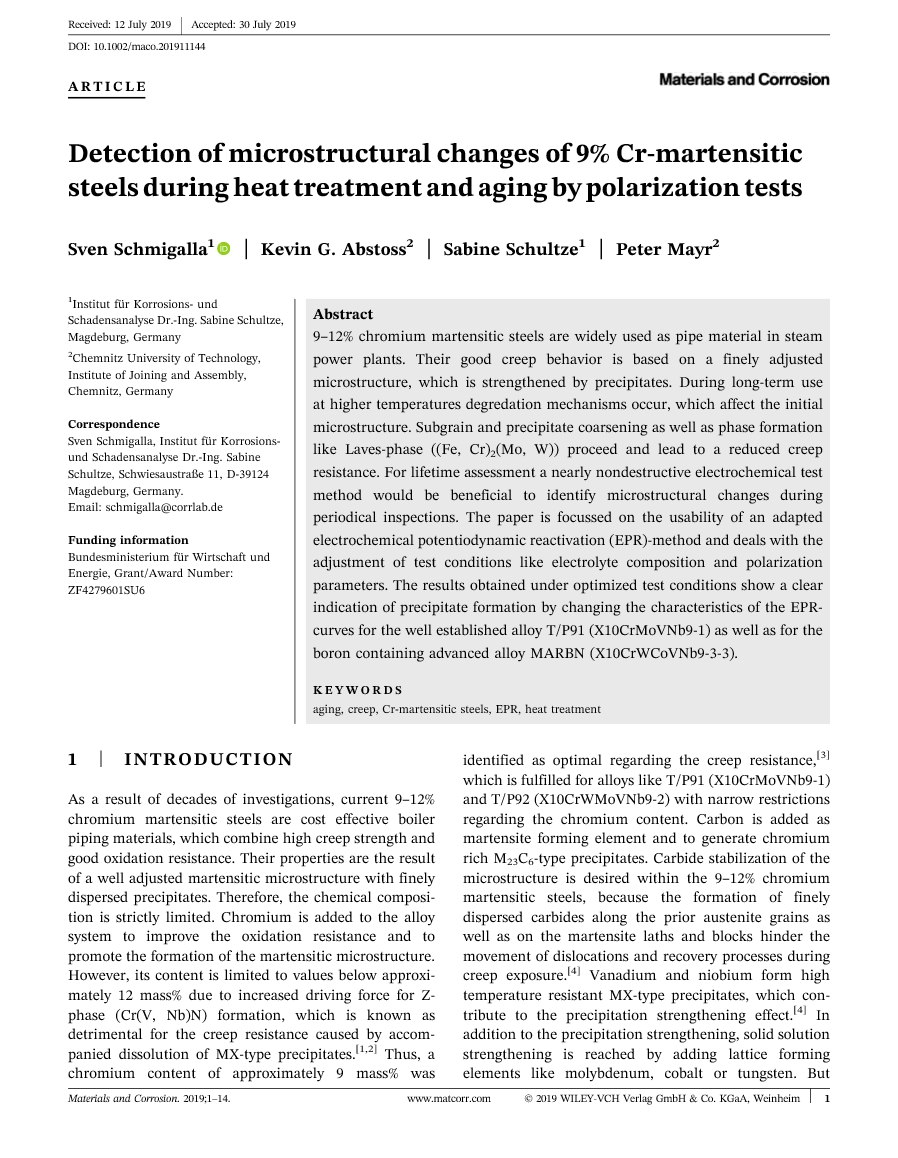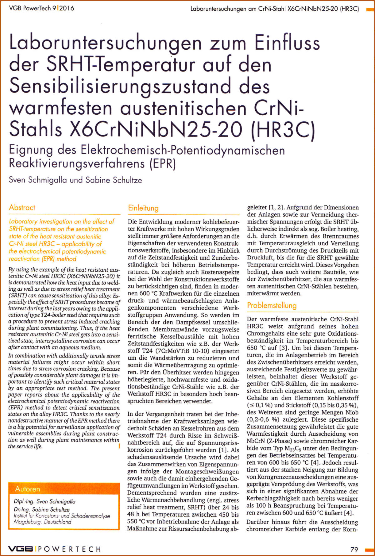 Kraftwerksstählen und die Bestimmung des Sensibilisierungsgrades